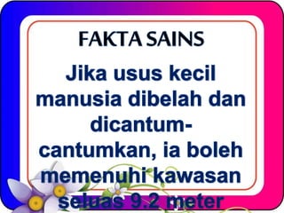 Fakta-Fakta Keunikan Bilangan Fibonacci dalam Dunia Nyata. 100 fakta sains Nadia Idayu. Bahagaian badan yang berbeza mempunyai jenis sel yang berbeza.